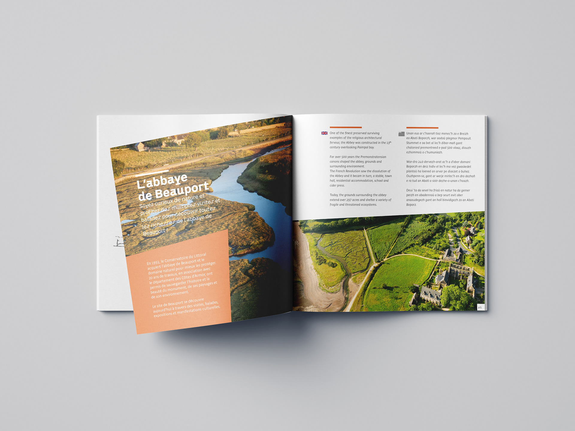 Communication des supports de communication pour l'Abbaye de Beauport à Paimpol : identité graphique, brochure de présentation, communication des événements BAM!, Les Escales de nuit, Noël à Beauport, etc.