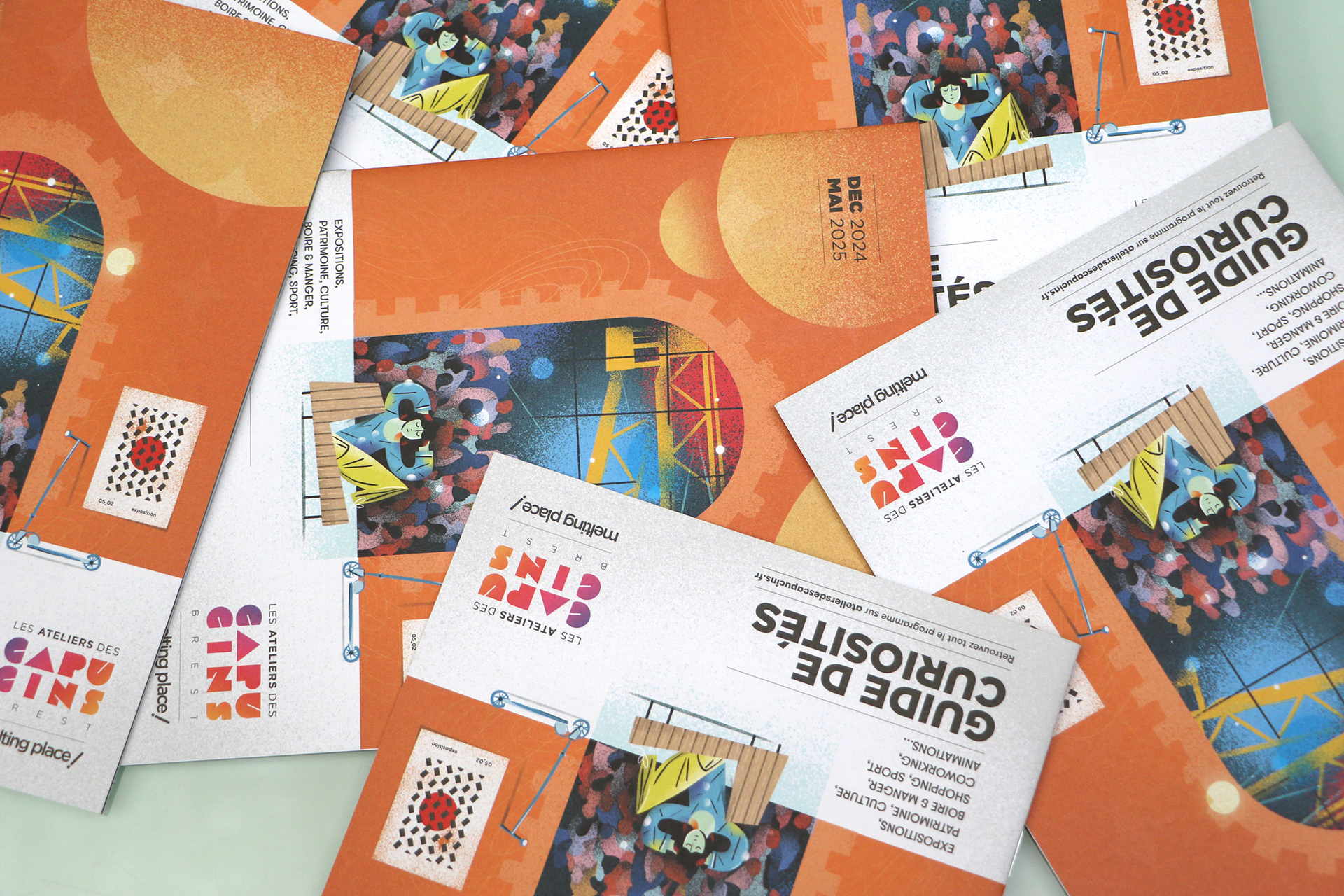 : mise en page guide, visuel des Ateliers de Noël, motion design.
