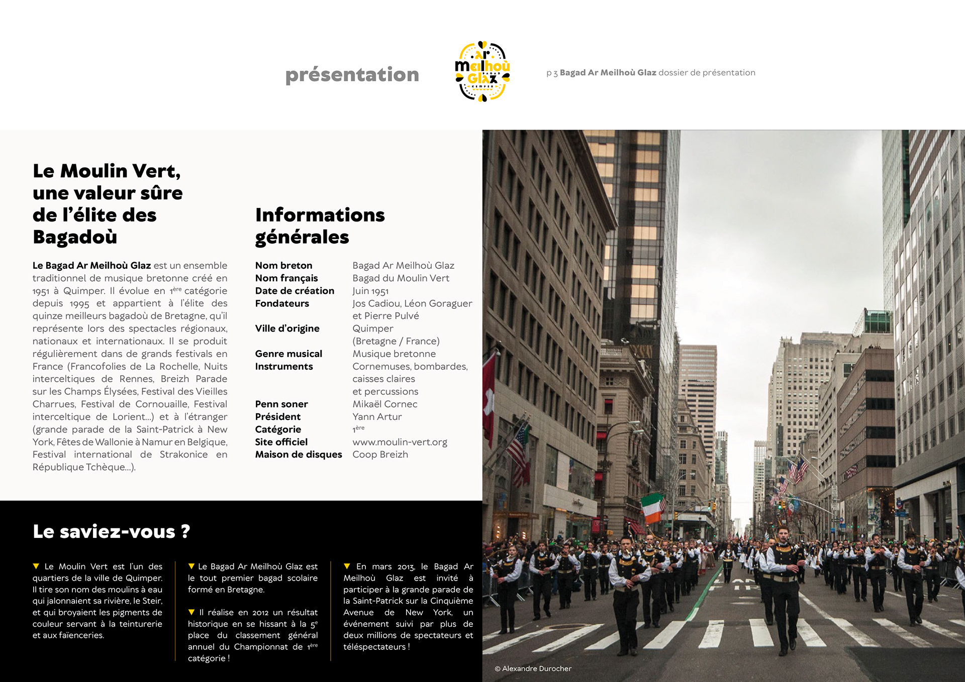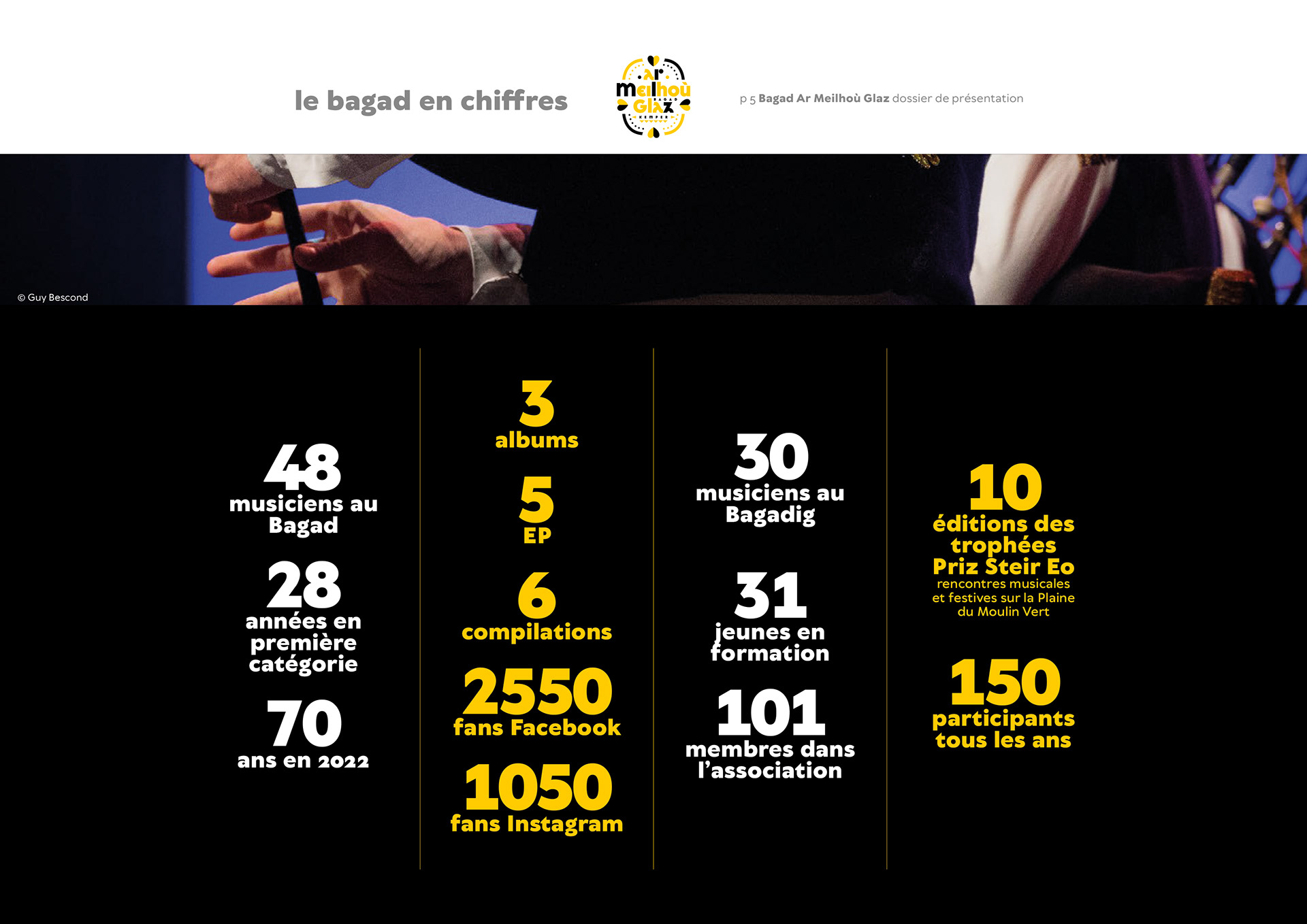 Création du logotype, de l'identité graphique et du motion design pour le Bagad ar Meilhoù Glaz (Moulin Vert - Quimper) première catégorie du championnat national, à l’occasion de leur 70e anniversaire !