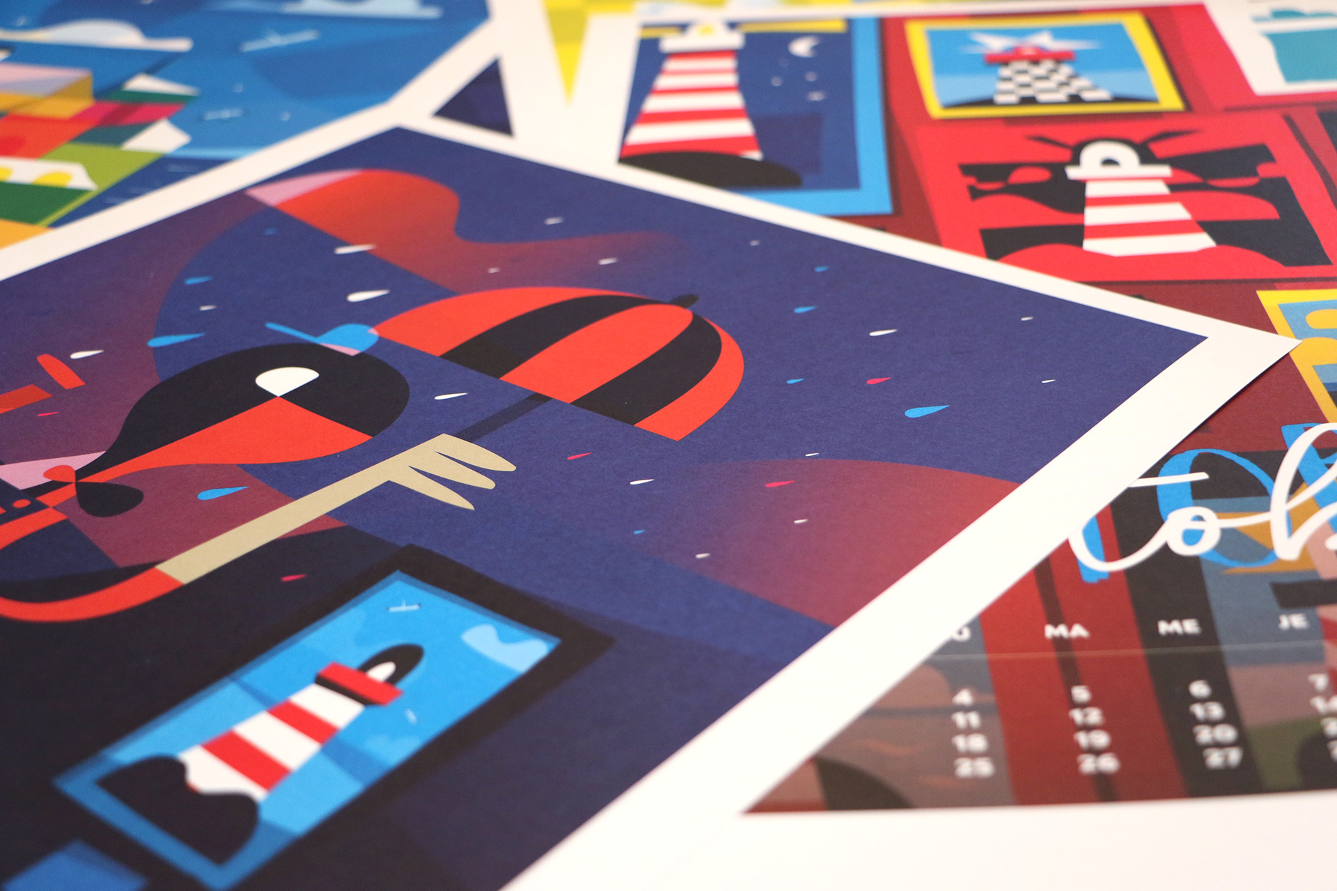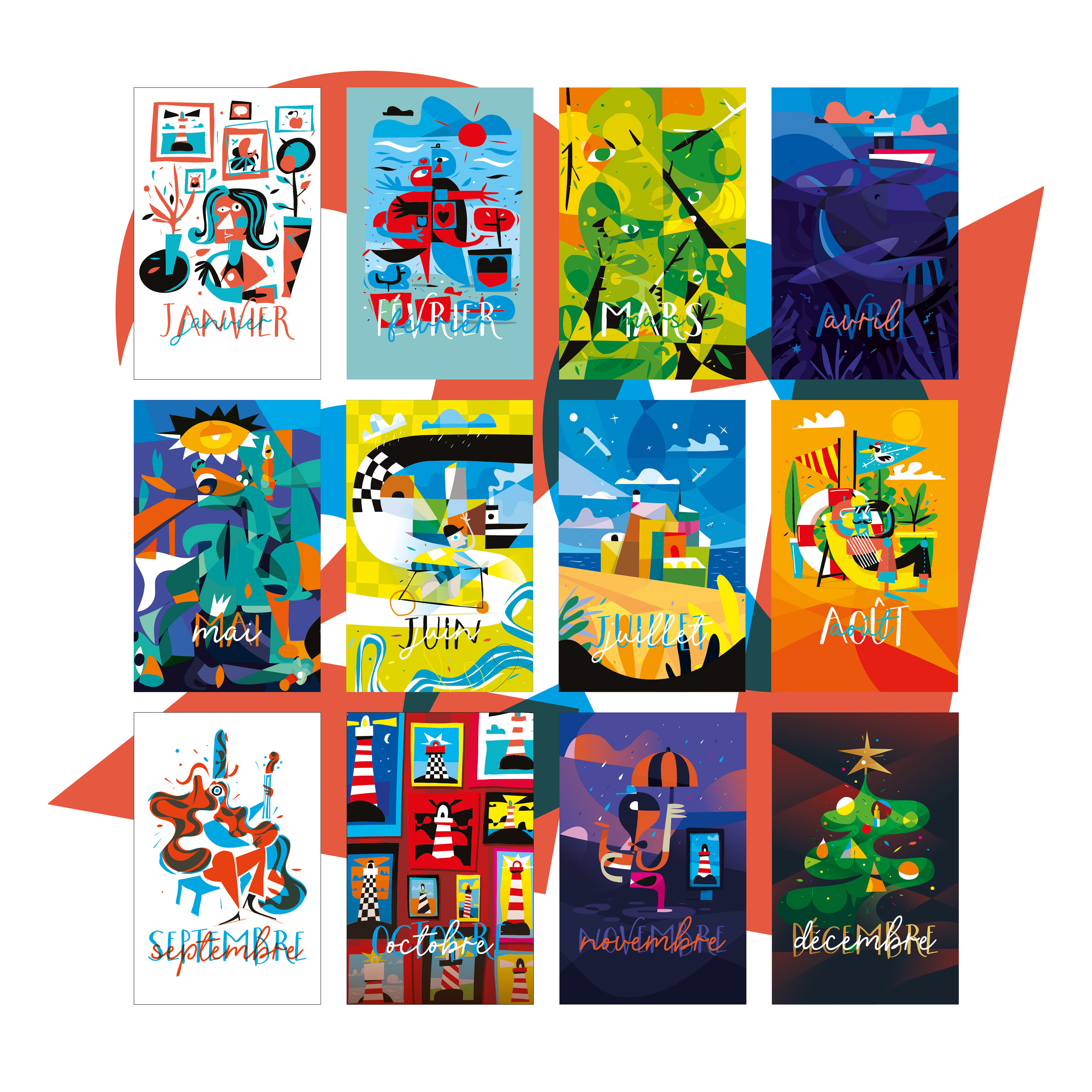 « Illustrer chaque mois avec un traitement graphique coloré, dynamique et joyeux. Les illustrations peuvent évoquer des référents locaux, comme l’univers maritime ou artistique, comme Matisse ou Picasso ainsi que des thèmes saisonniers…"