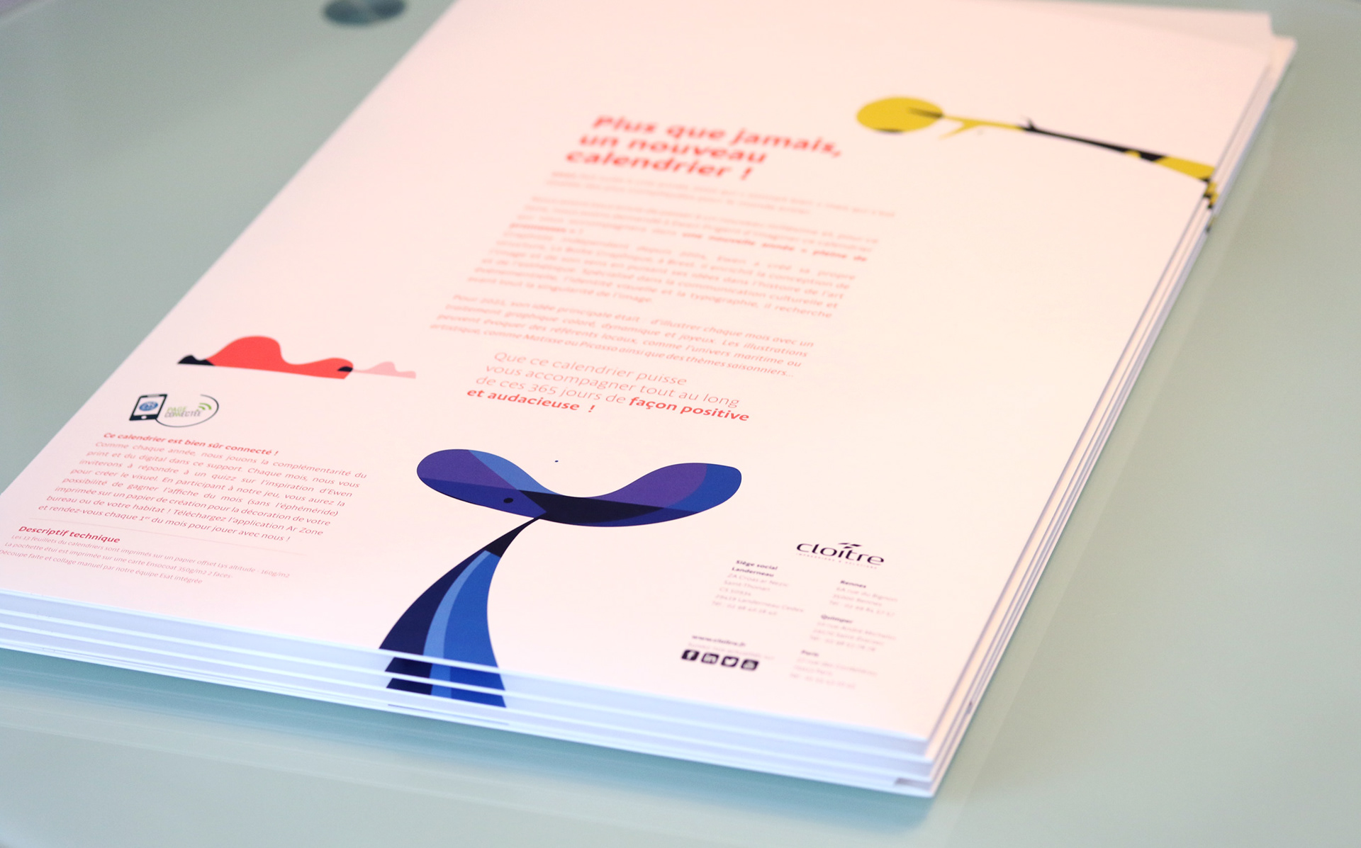 Conception et réalisation graphique du calendrier 2021 pour Cloître Imprimeurs à Saint-Thonan (Finistère) : calendrier, Note book, sous main…