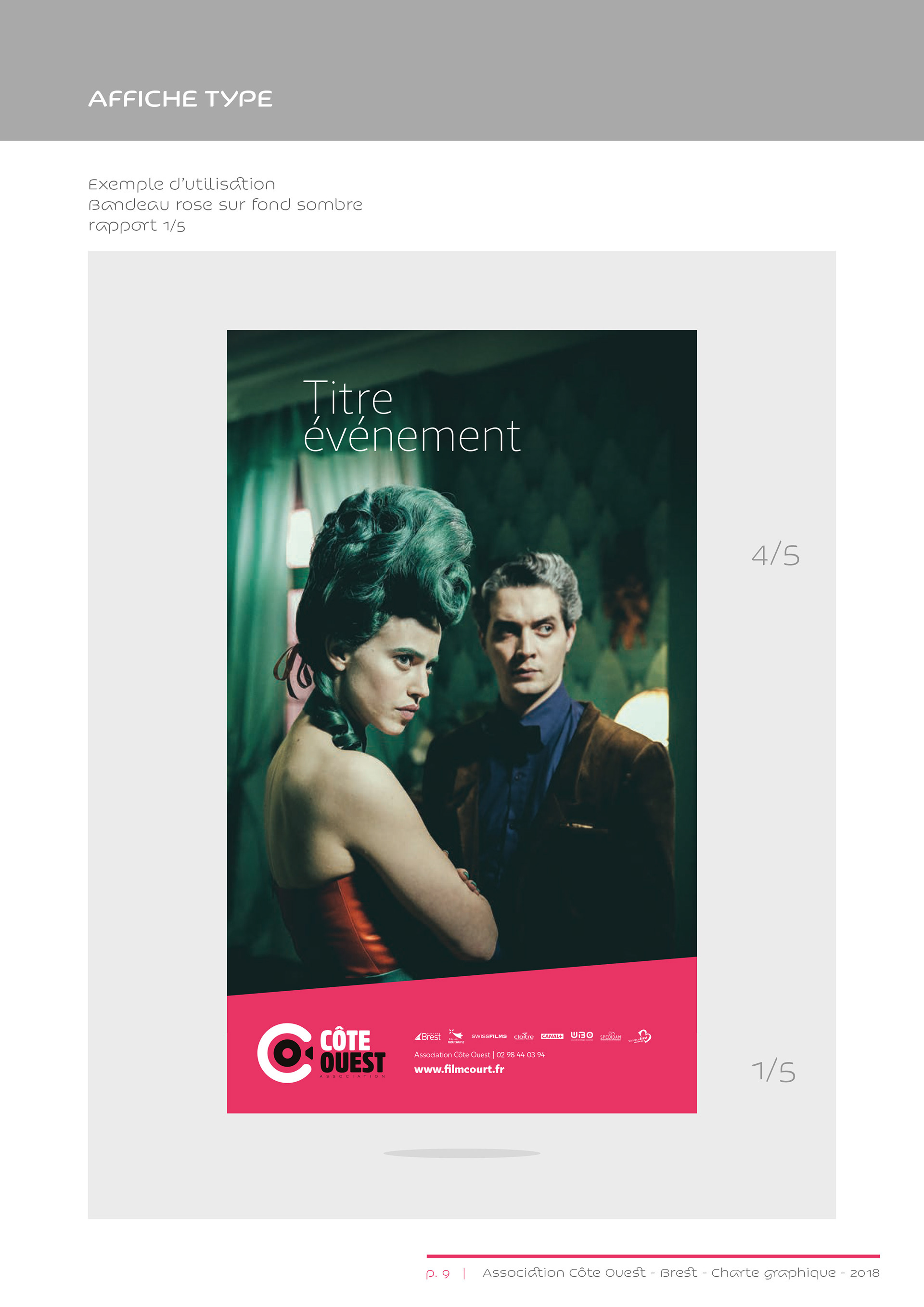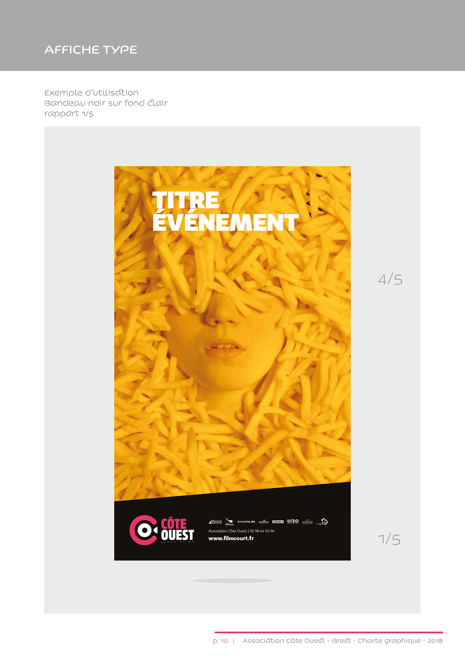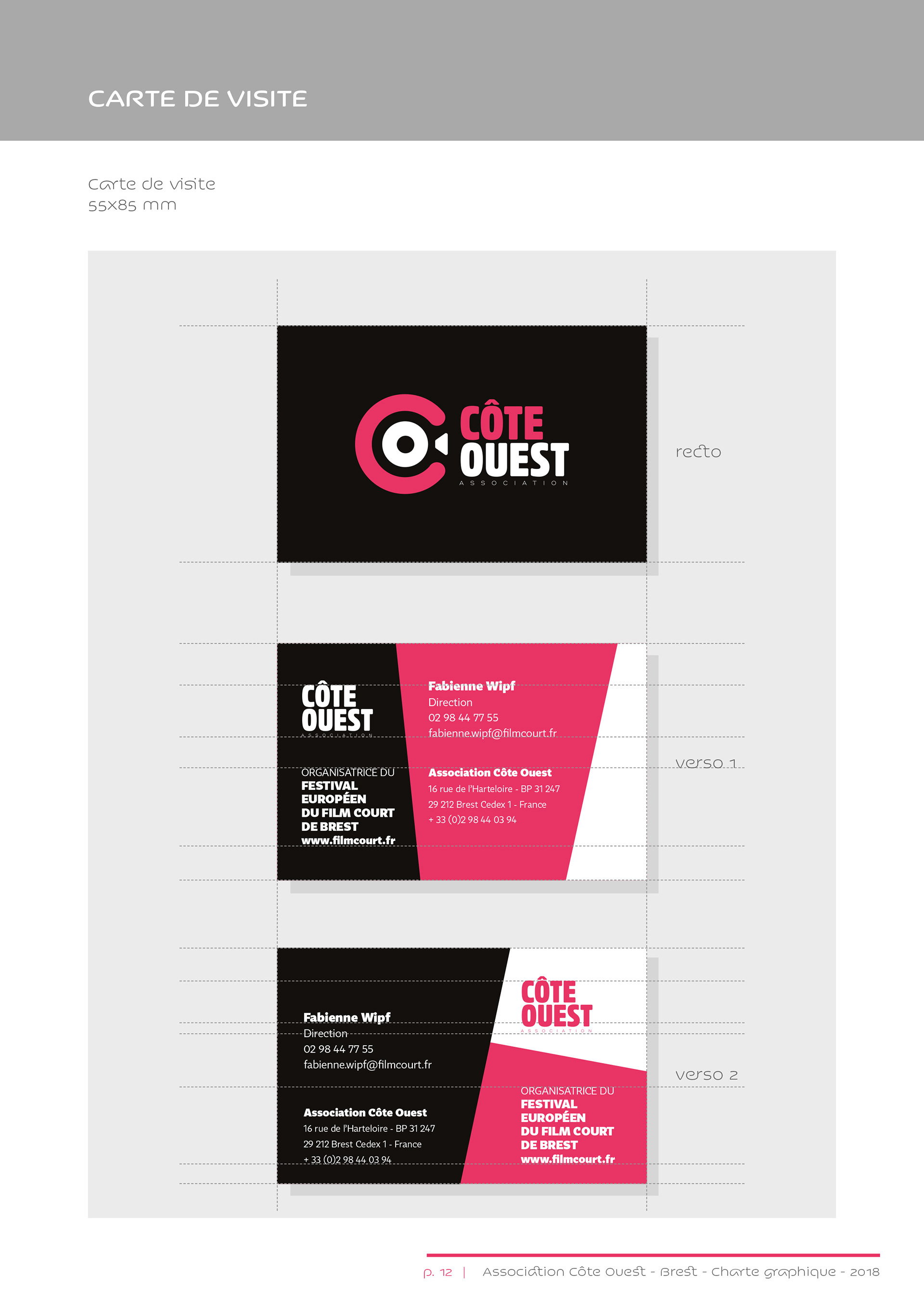 Identité visuelle de l’association Côte Ouest, organisatrice du Festival européen du film court de Brest.