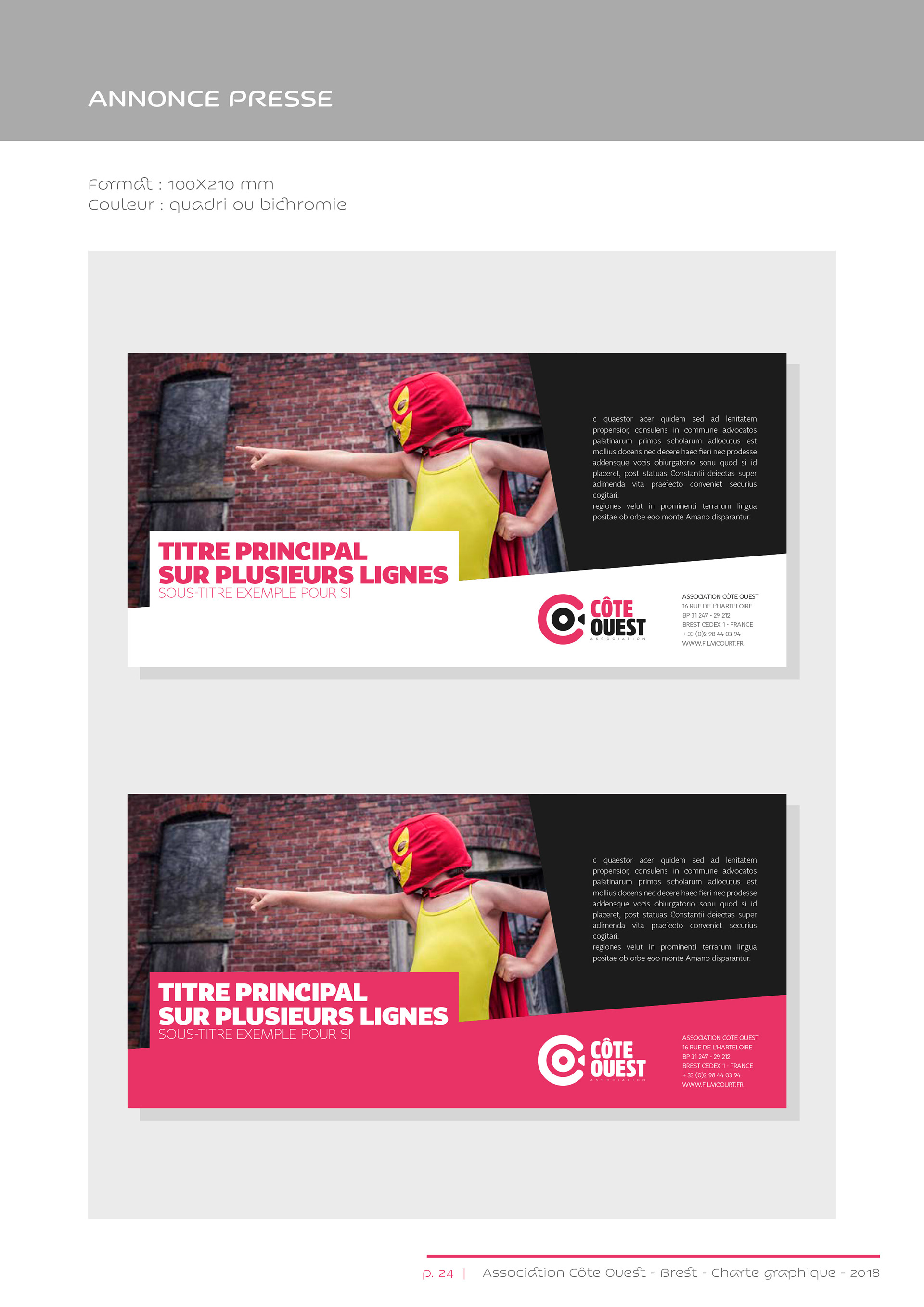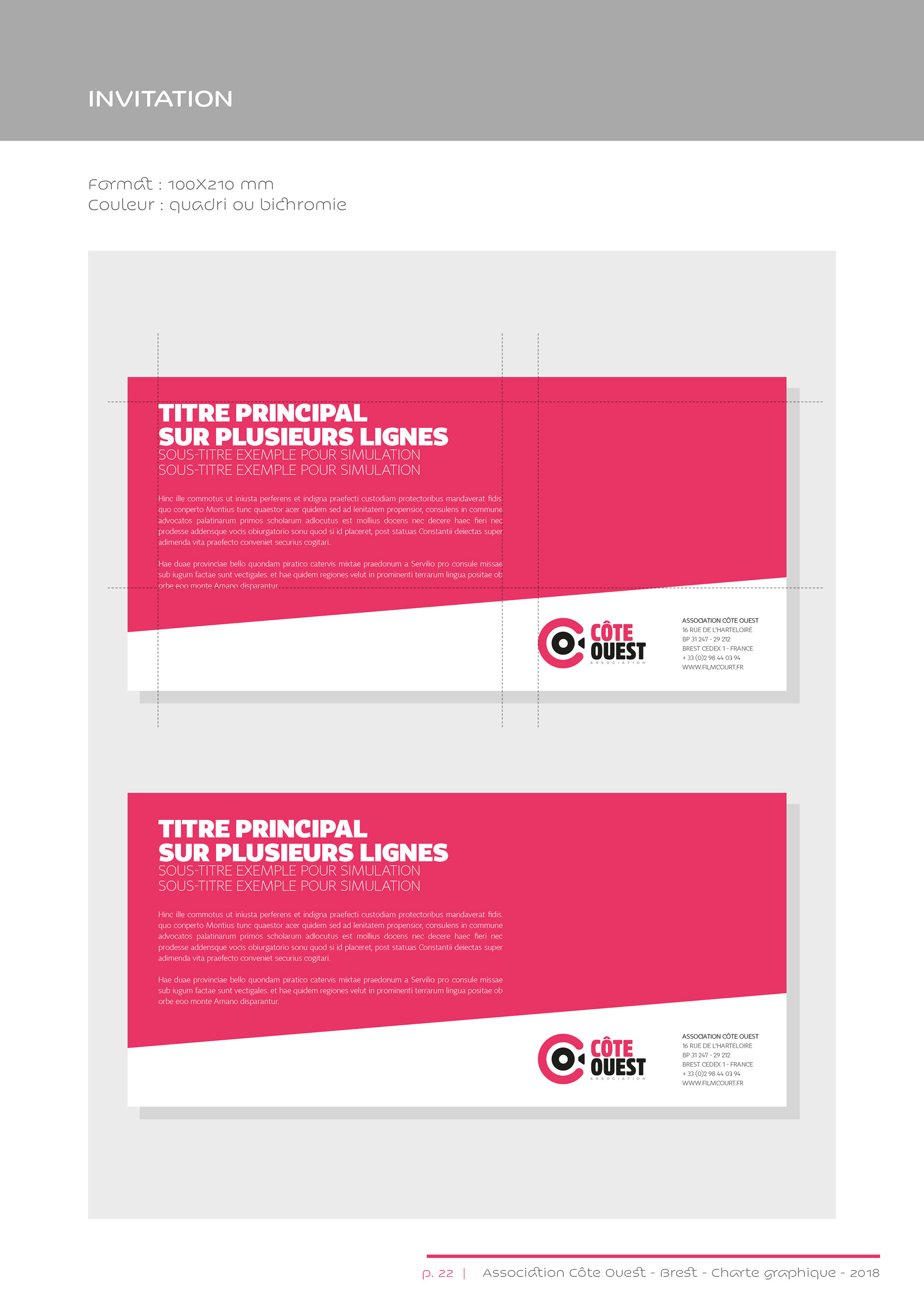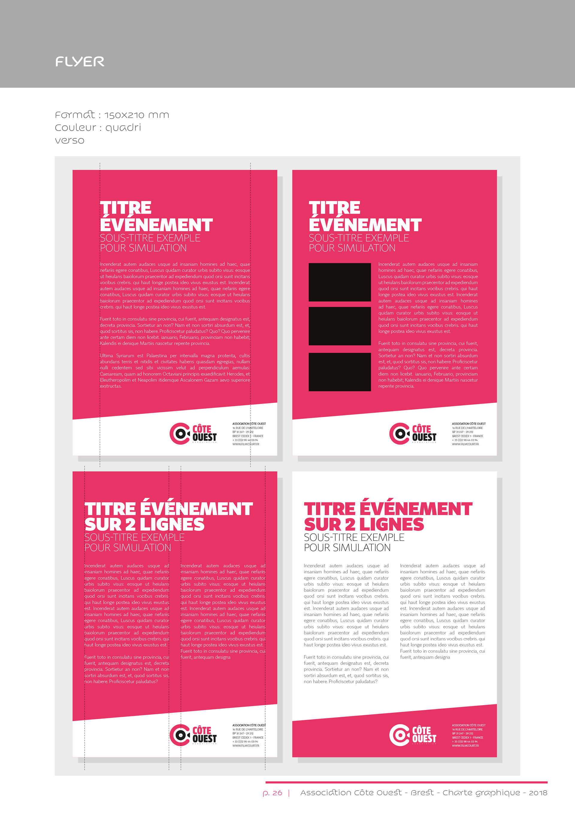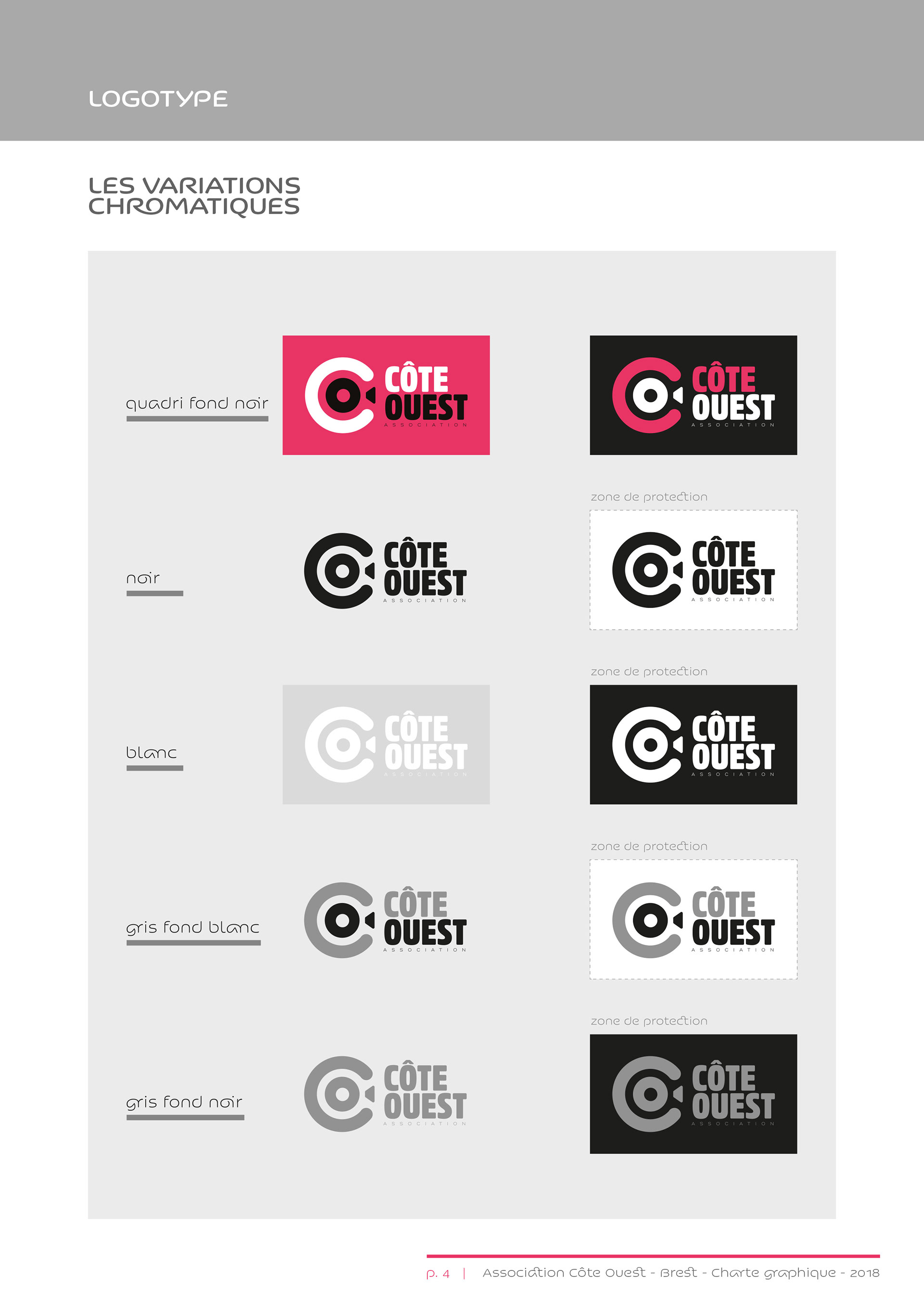 Identité visuelle de l’association Côte Ouest, organisatrice du Festival européen du film court de Brest.