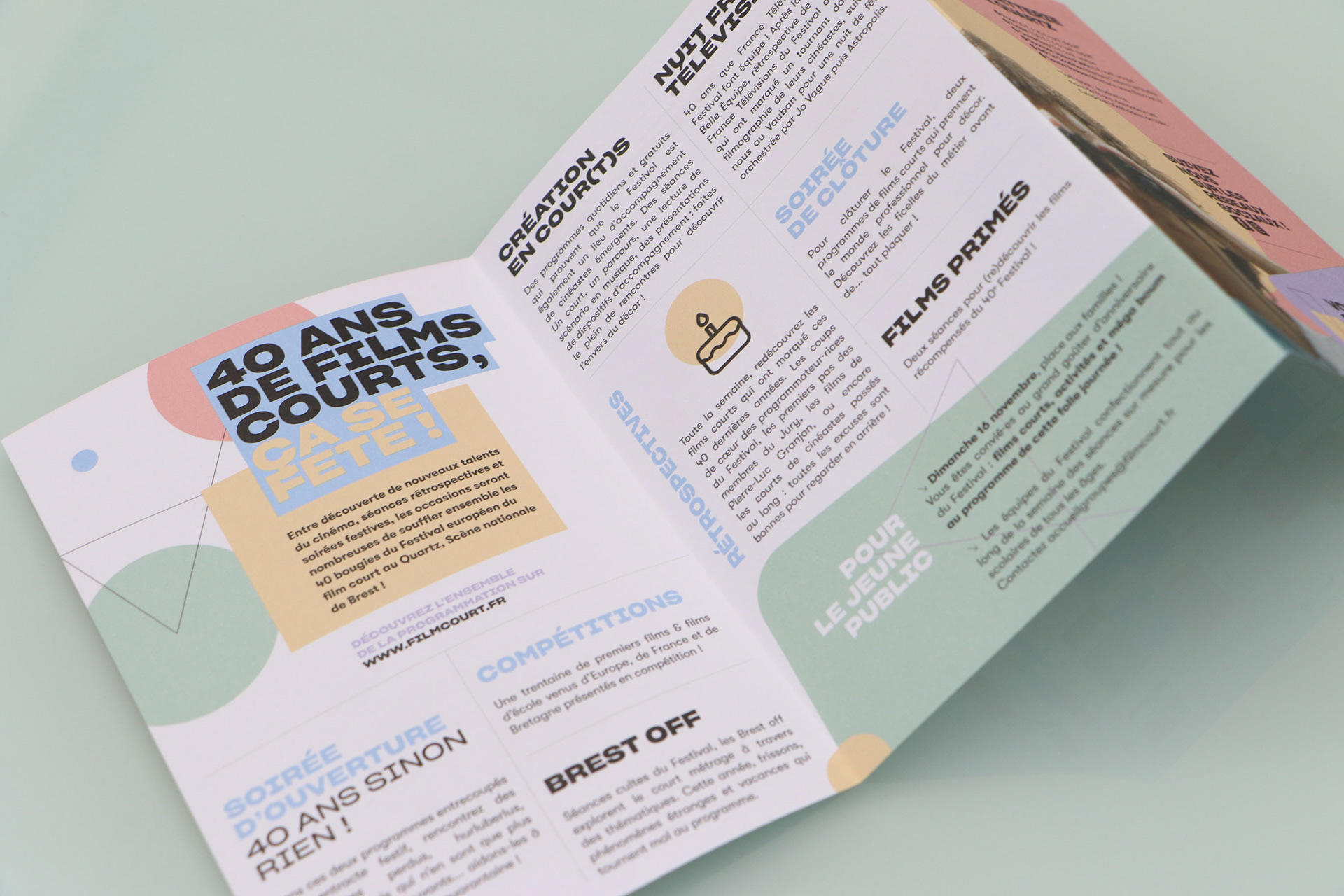 Avec un vocabulaire graphique coloré et minimaliste, j’ai cherché à capter l’essence du festival : son énergie, sa créativité, et son accessibilité. Au programme : une refonte complète du branding, des animations en motion design, et une signalétique pensée pour guider et immerger les festivaliers dans cet univers visuel. Une gamme de couleurs complémentaires pastel vient renforcer les couleurs primaires.