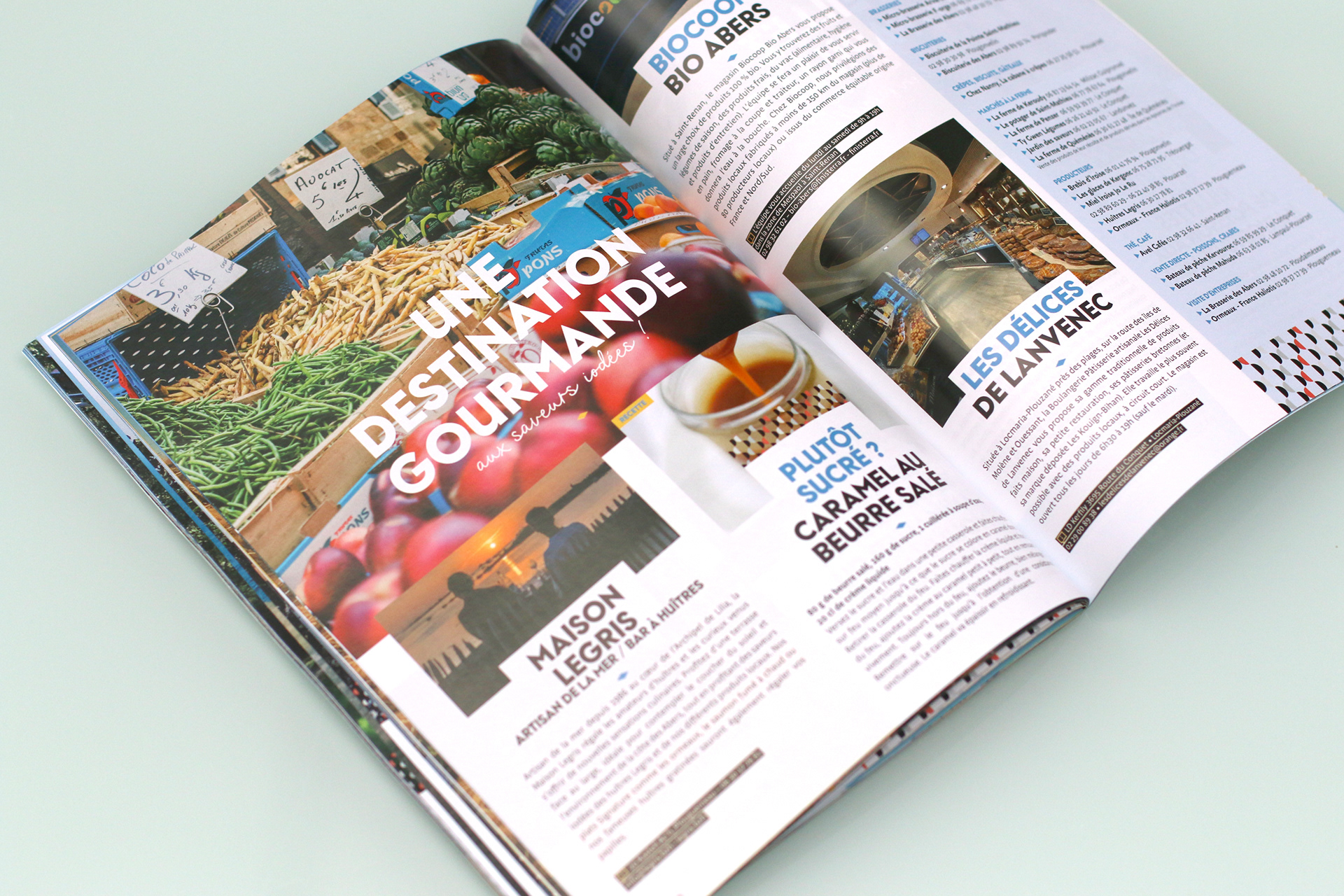 Mise en page du Guide de 64 pages et de la Carte pour l'Office de tourisme IROISE BRETAGNE.