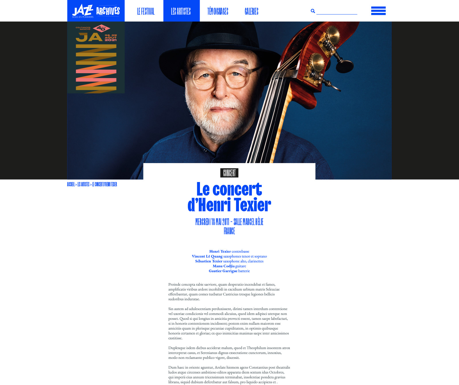 Conception graphique du site des archives du festival Jazz sous les pommiers :