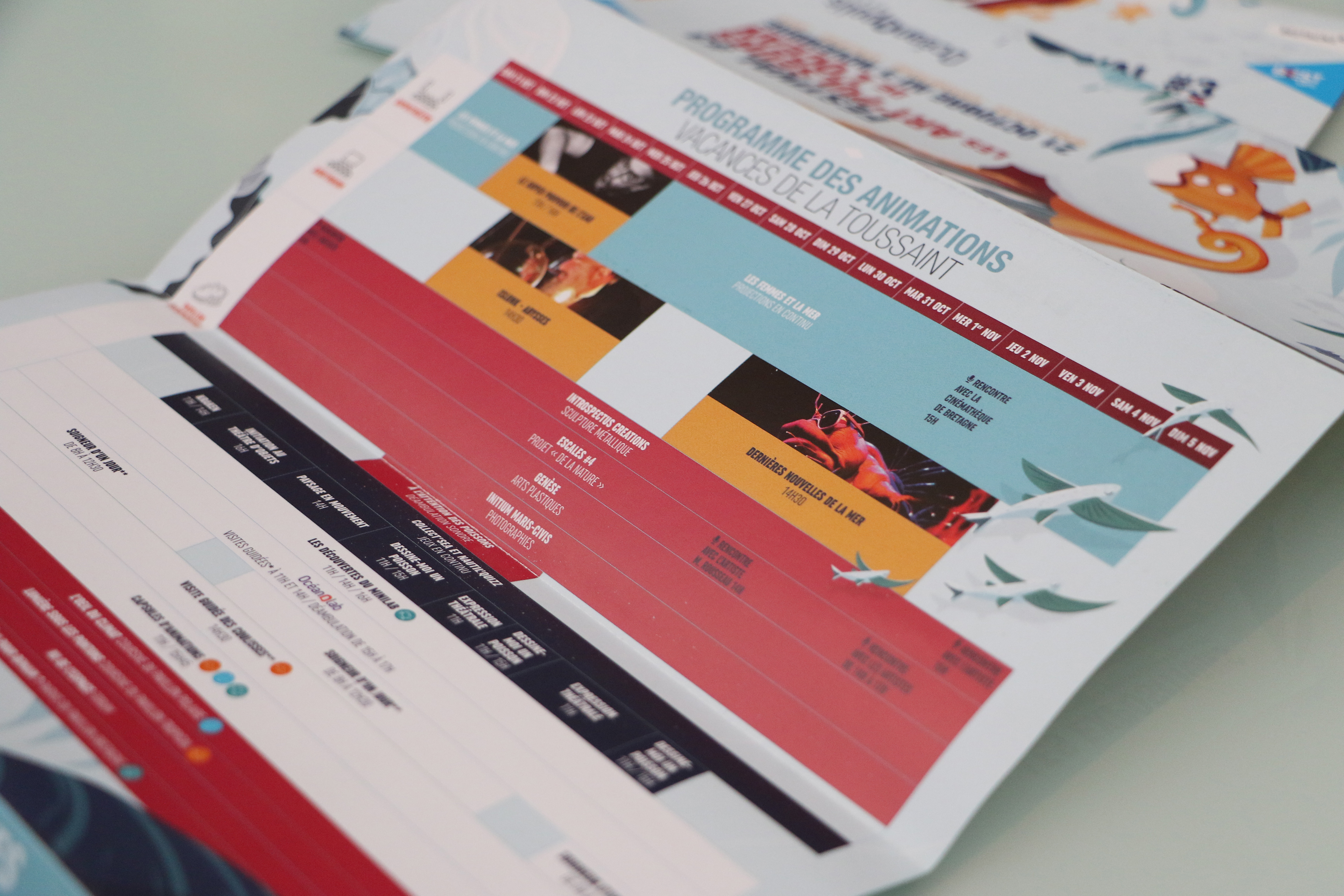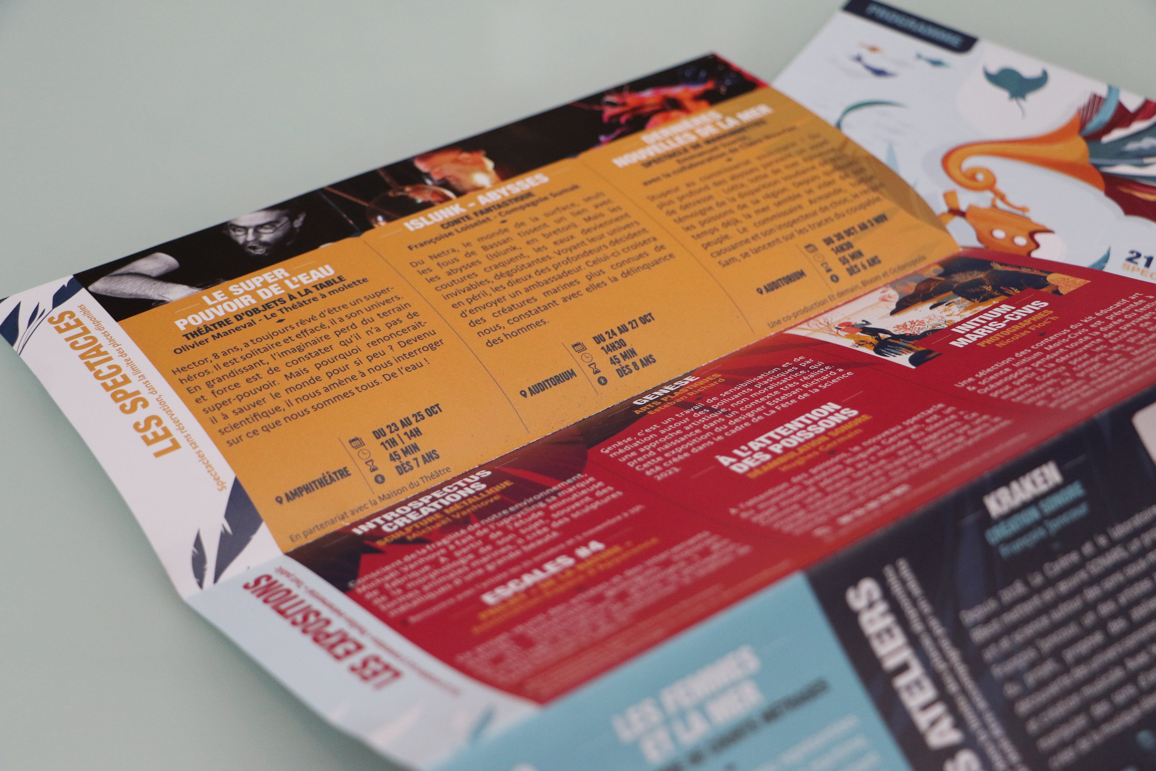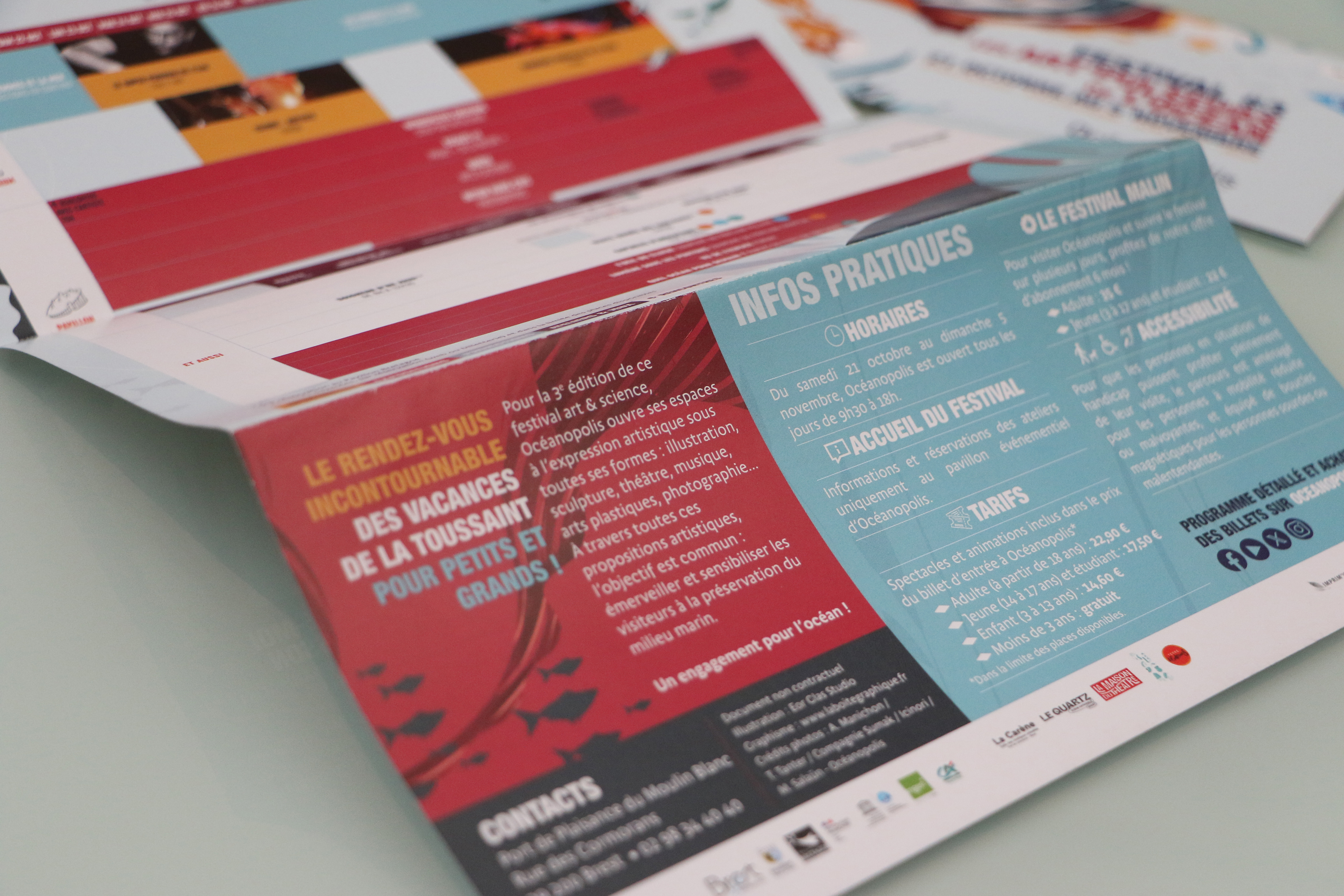 Mise en page de la brochure du festival Les Art’Pulseurs de l’Océan 2023 à Océanopolis Brest.