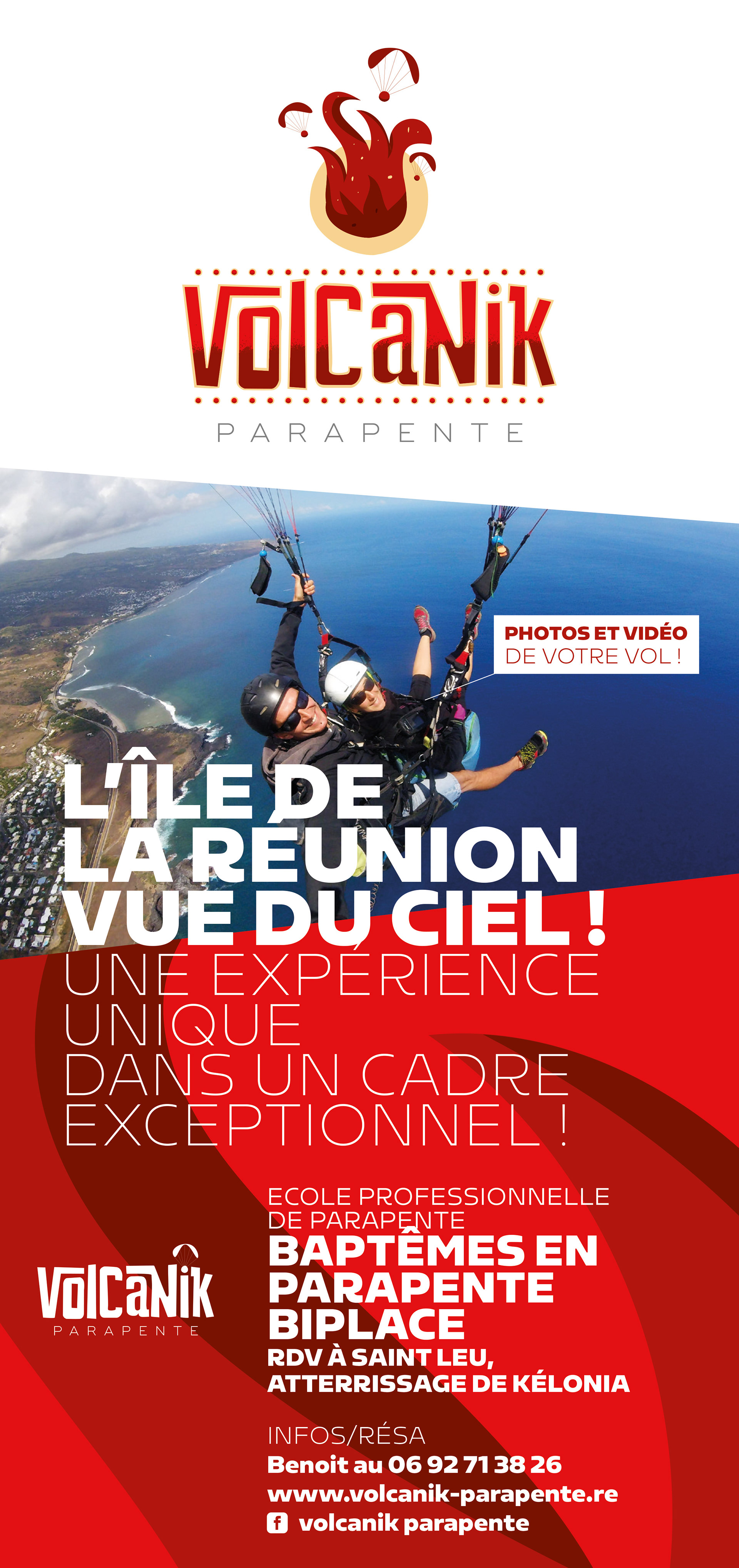 Identité visuelle, supports de communication et charte graphique du site internet pour l’entreprise Volcanik Parapente à La Réunion